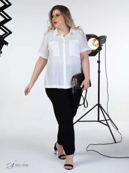 Легкая блуза-рубашка прямого силуэта выполнена из фактурной, однотонной, хлопковой ткани. Модель с рубашечным воротником на стойке и застежкой на пуговицы. Просторный рукав длиной до локтя, с отворотом по низу. На полочке настрочены нагрудные карманы. Это классическая, элегантная и, в то же время, универсальная модель, подходящая для разных случаев жизни. Она прекрасно впишется в Ваш гардероб и станет незаменимой при создании разнообразных комплектов.