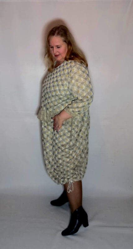 По линии одного бокового шва объемный накладной карман, нижняя часть другого бокового шва собирается кулиской.