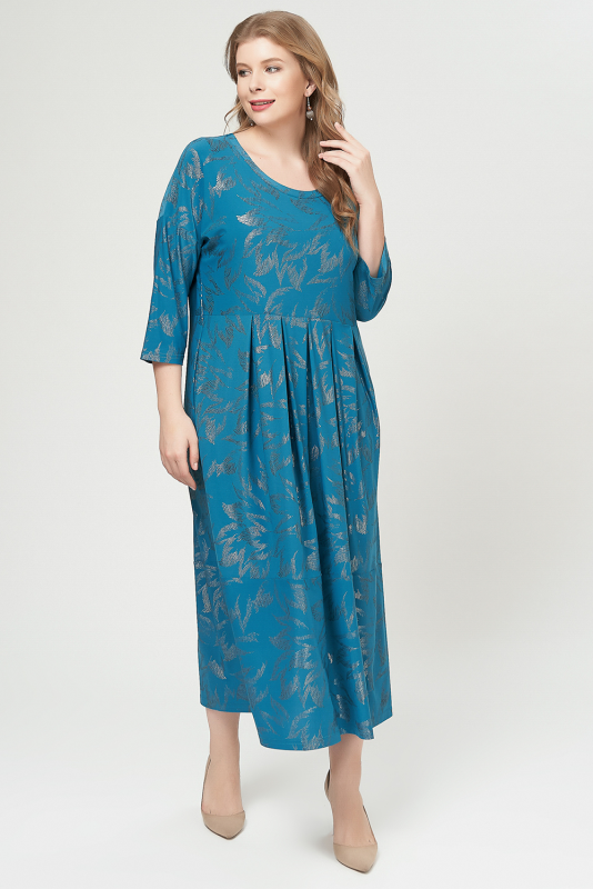 Нарядное платье из струящегося трикотажа - масло с блестящим принтом.