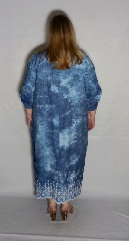 Шикарное платье из облегченной, рубашечной джинсы с эффектом "варенки" и вышивкой по низу платья и рукавов.