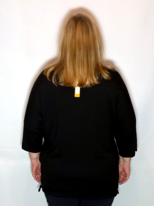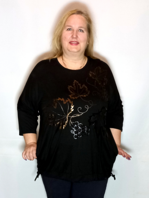 В боковых швах спрятаны карманы. По низу широкая кулиска с вставленным в нее кантом, которым Вы можете присбаривать низ туники.
