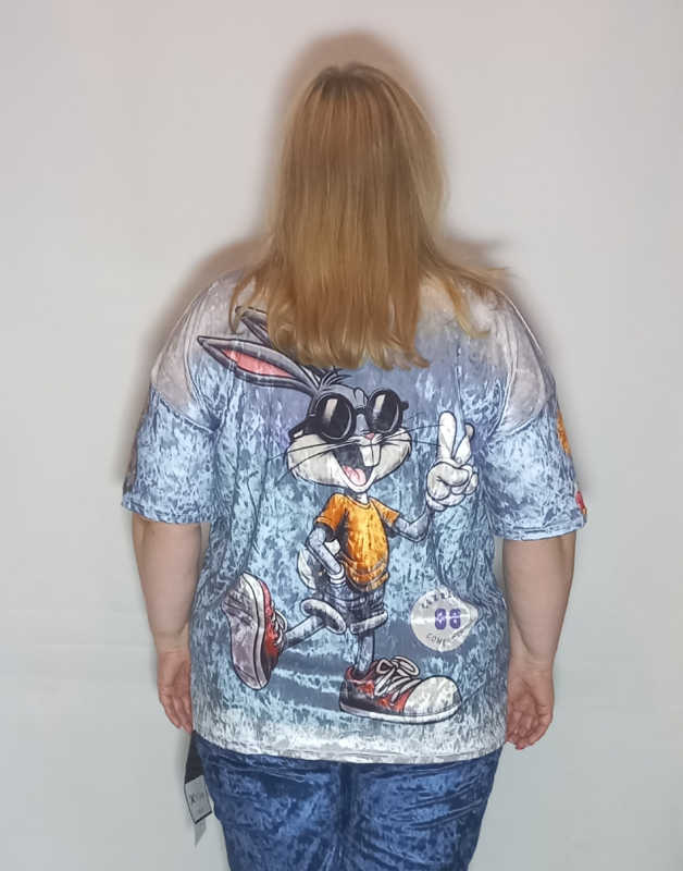 Шикарная  туника- футболка выполнена из мягкого, очень эластичного мраморного велюра с рисунком амбре и  тканным принтом.