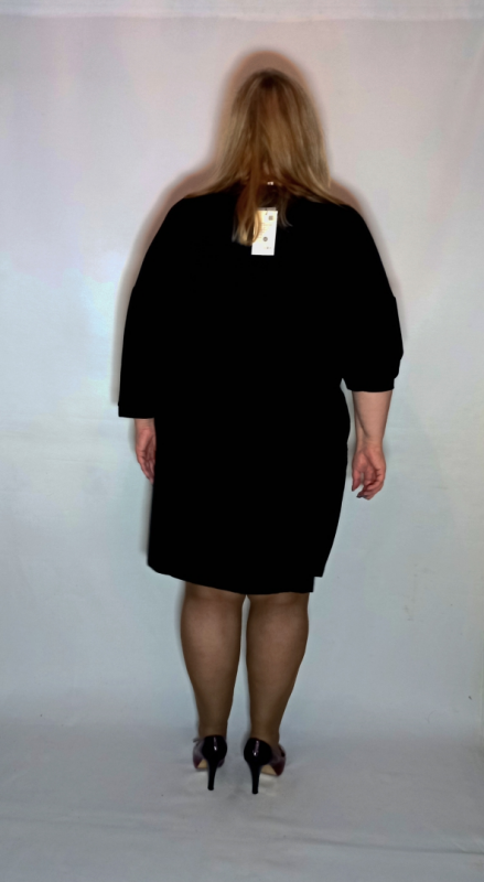 СТильное платье-туника выполнено из  сочетания гладкого плотного трикотажа ( спинка и рукав) и трикотаж по д кожу.  Однотонный трикотаж  умеренно эластинчый, хорошо скрывает шероховатости фигуры. Трикотаж под кожу тянется слабее, но тянется